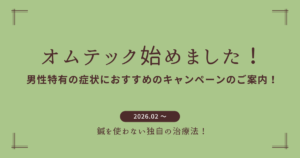 【ご予約メールの返信】営業終了後に頂いたご予約の返信は、翌営業日に順次させて頂きますので、ご了承ください。 2025 6/06 お知らせ 2024年12月20日2025年6月6日 お知らせ pickup よかったらシェアしてね! URLをコピーしました! 男性の不妊鍼灸を受ける方増えてます ED(勃起不全)、前立腺など男性特有の疾患ご相談ください 不妊と生活習慣について 関連記事 オムテック(男性向け)始めました! 2026年2月21日 不妊鍼灸セミナーを開催しております! 2026年2月21日 鍼灸師(鍼灸学生可)迎春堂研修生を募集しております 2023年11月23日